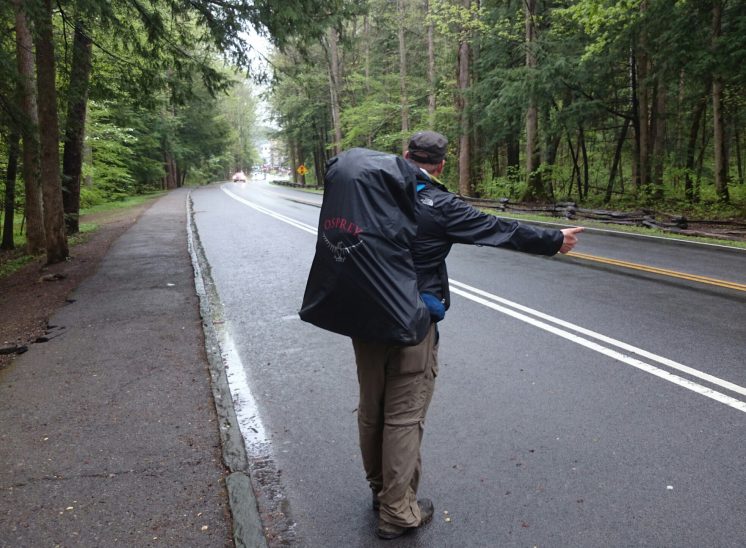 Als ich heute morgen aus unserem Motelzimmer blickte, sah ich nichts als Regen. Pünktlich um 9:00 standen wir trotzdem bereit, um mit dem Shuttle zurück zum Trail zu fahren. Nach 20 min vergeblichen Wartens, bemerkte der Motelbesitzer dann, dass er vergessen hatte einen Fahrer zu organisieren. Da auch nach mehreren Telefonaten keiner in der Lage war uns zu fahren, entschieden wir uns zu trampen. Die Ausgangslage dafür war natürlich eher mäßig, denn wer nimmt schon 3 nasse Typen mit großen Rucksäcken mit? Nach 20 min hielt dann doch ein Wagen mit 2 Kanadierinnen, die für ein Bridgeturnier in der Stadt waren. Sie setzten uns dann am Trail im Regen aus. Der ganze restliche Tag war dann einfach nur noch nass. Es hätte ein Tag mit Superaussicht werden können! Stattdessen war der Trail einfach nur ein einziger Fluss. Am Abend wird im Shelter natürlich auch nix trocken, sondern alles ist einfach nur kalt. Ich war aber froh, wenigstens in trockenen Sachen in meinen warmen Schlafsack kriechen zu können.