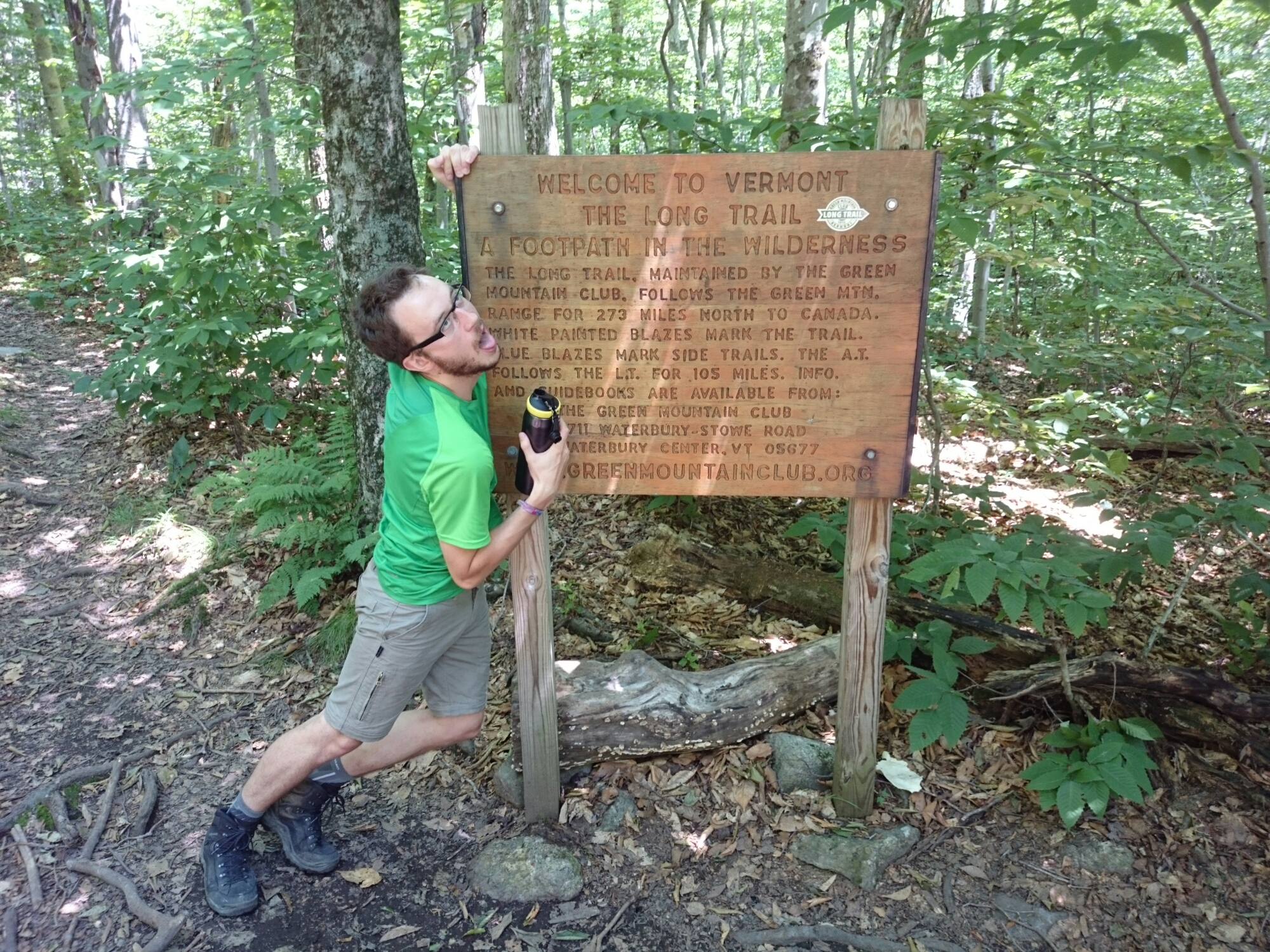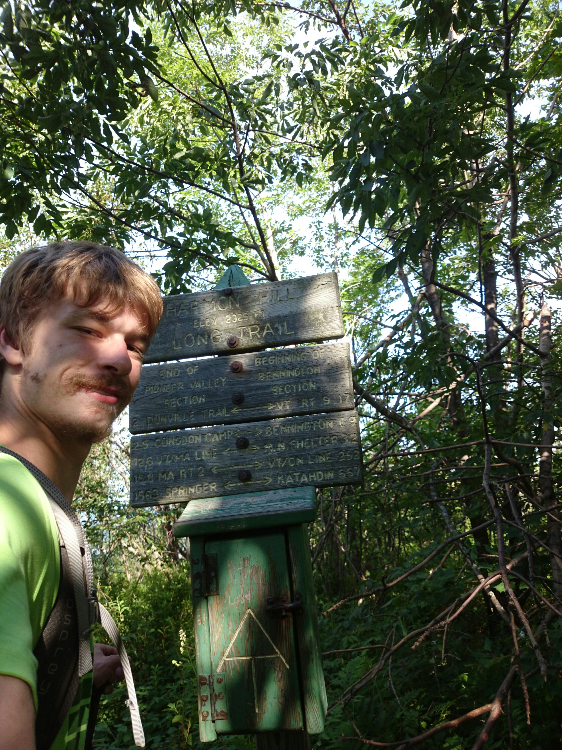 Nach dem üblichen Motelfrühstück mit Cornflakes und Muffins fuhr uns ein Motelmitarbeiter zurück zum Trail. Wie üblich ging es bergauf aus der Stadt hinaus. Im Anstieg biss mich dann wieder irgend ein Tier in die Wade. Ich weiß nicht warum, aber anscheinend trifft es echt immer den, der hinten läuft. Am Ende des Anstiegs wartete jedoch ein schönes Schild mit der Staatsgrenze zwischen Massachusetts und Vermont auf uns. Für Smiley hieß es damit erster und für mich elfter Bundesstaat geschafft. Kurz dahinter war dann auch die 1600 Mi Marke, die aber nicht sichtbar war. Der Shelter war dann ziemlich voll. Smiley entschied sich dafür zum ersten Mal zu zelten. Ich dagegen war ein bisschen faul und legte meine Isomatte einfach auf den Boden.